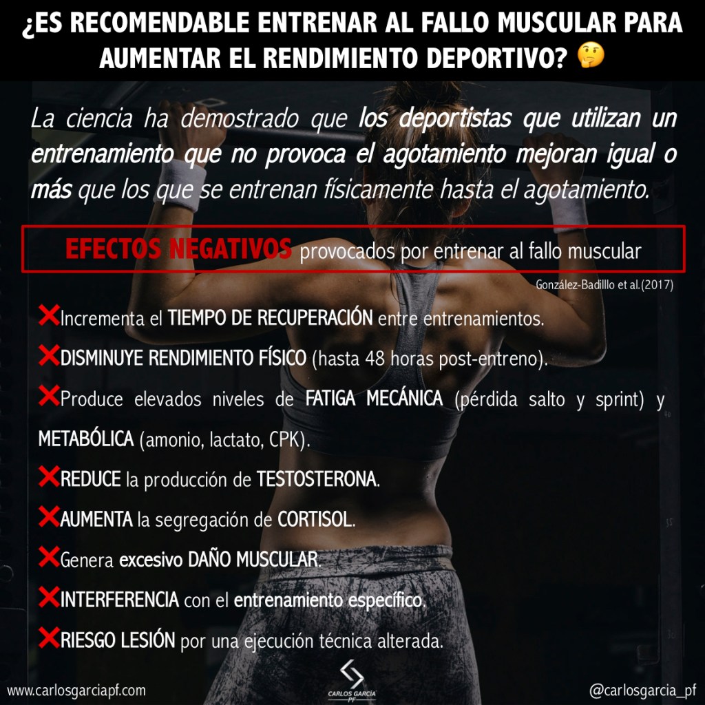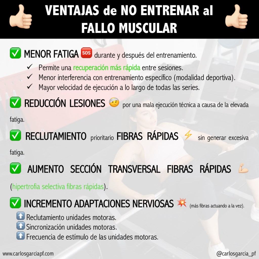 La ciencia ha demostrado que los deportistas que utilizan un entrenamiento que no provoca el agotamiento mejoran igual o más que los que se entrenan físicamente hasta el agotamiento (González-Badillo et al., 2017).