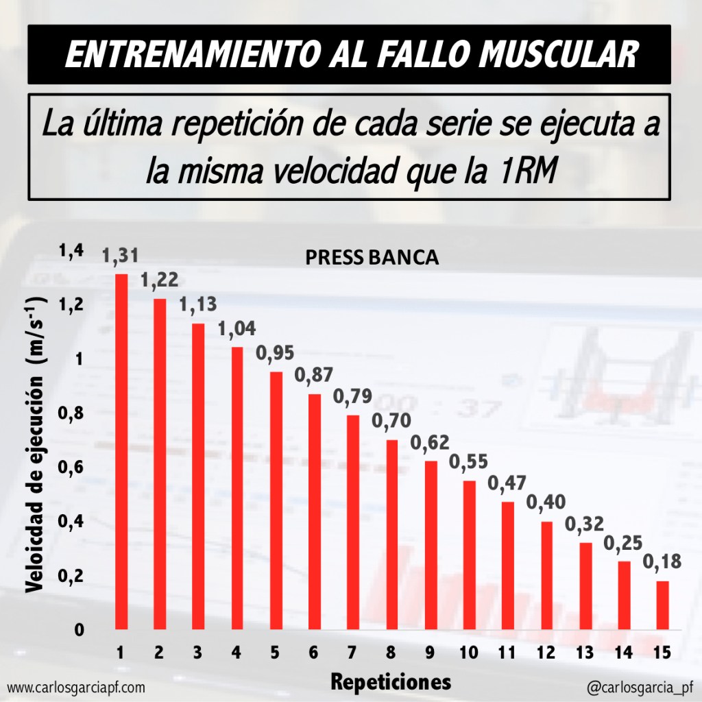 Un entrenamiento en el que se agotan todas las repeticiones posibles en cada serie se conoce comúnmente como “entrenamiento al fallo muscular”.