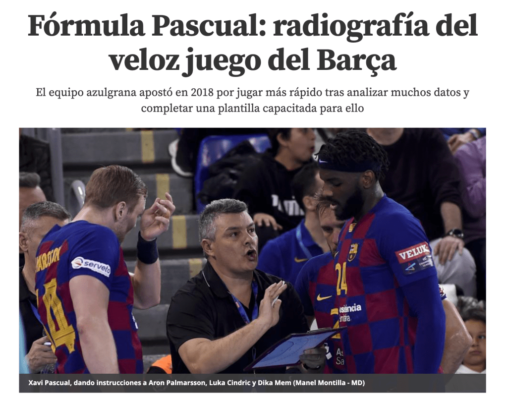 En esta línea, la propuesta de un juego más rápido del FC Barcelona ha abierto un enorme debate entre técnicos, aficionados y periodistas. Tal y como explicaba el propio Xavi Pascual en una entrevista concedida al diario Mundo Deportivo (https://www.mundodeportivo.com/balonmano/20200526/481394244212/formula-pascual-radiografia-del-veloz-juego-del-barca.html), han modificado su modelo de juego en los últimos años para tratar de aumentar el número de posesiones en contraataque, puesto que la eficacia de lanzamiento en contraataque es mayor que en ataque posicional.