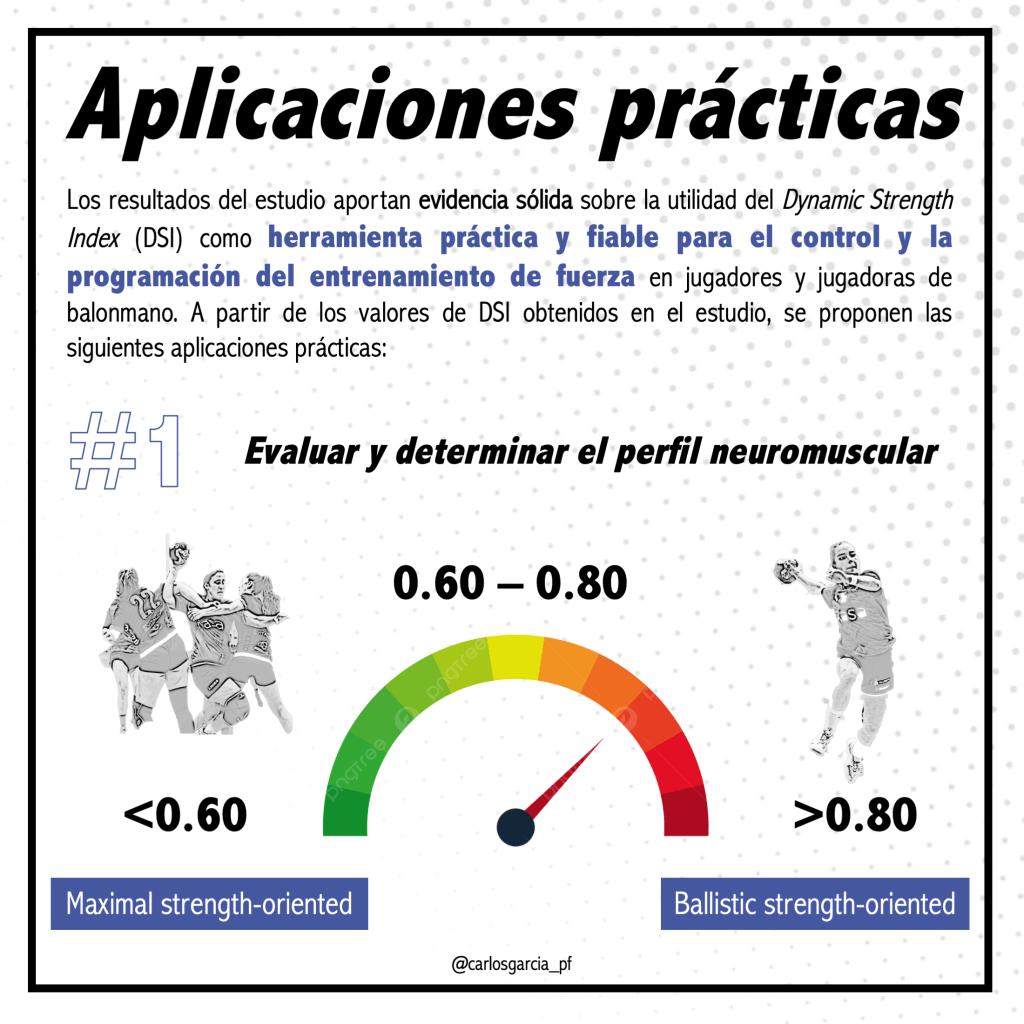 El estudio ofrece resultados sólidos que respaldan el uso del Dynamic Strength Index (DSI) como herramienta válida y práctica para evaluar el rendimiento neuromuscular en jugadores y jugadoras de balonmano. Entre los principales hallazgos destacan: